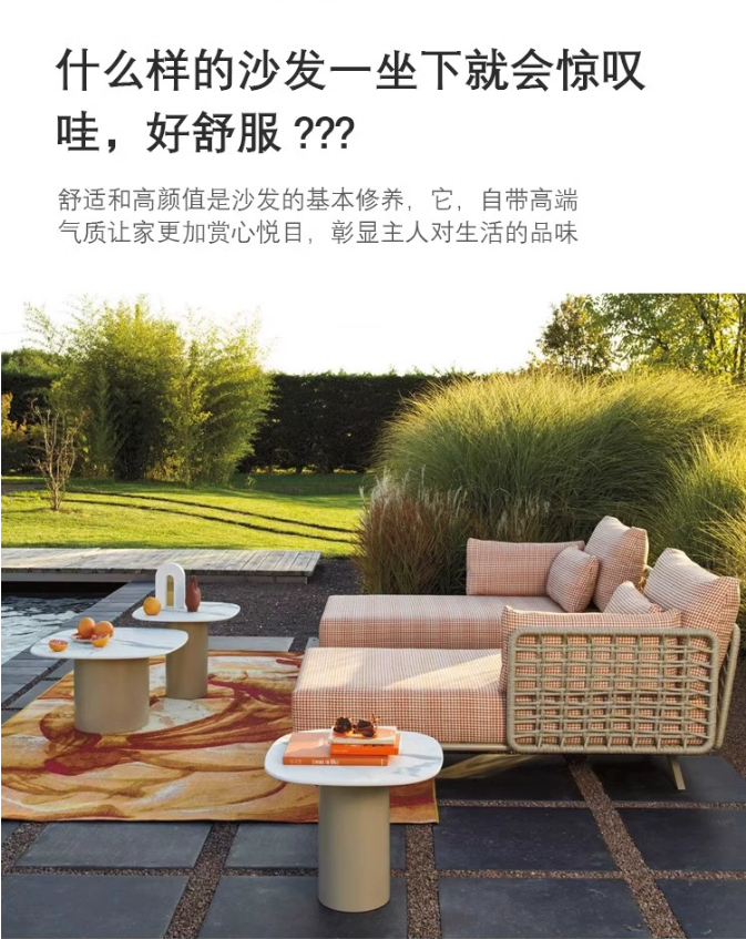 戶外沙(shā)發茶幾室外庭院花園防水防曬藤編躺床別墅露天休閑家具