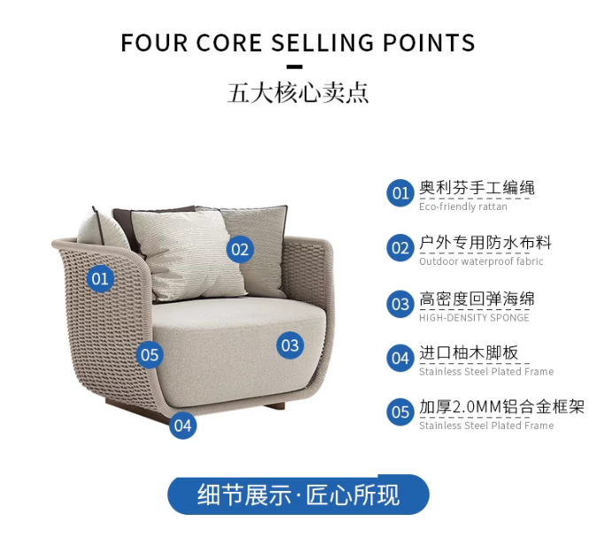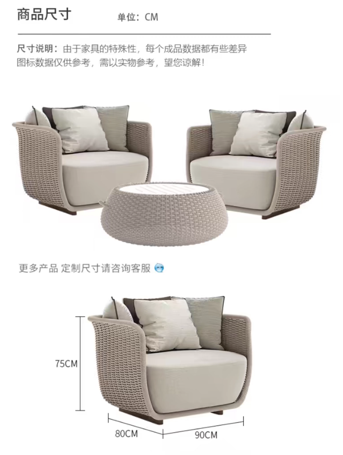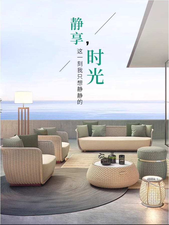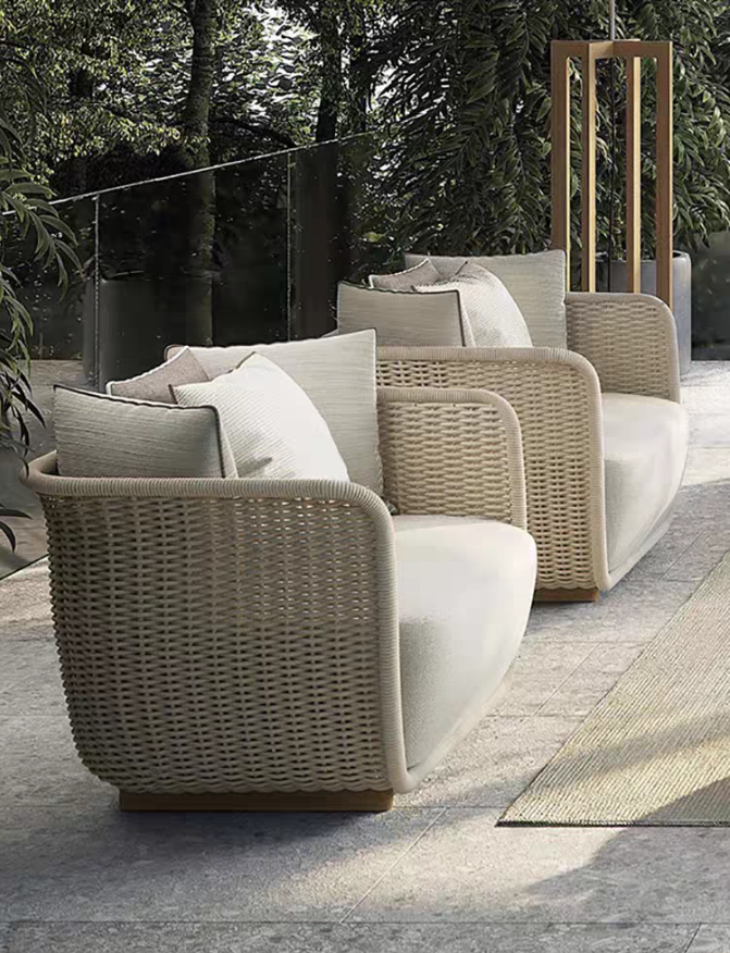 戶外庭院花園藤編沙發售樓部設計師室外露台躺椅別(bié)墅露(lù)天家具