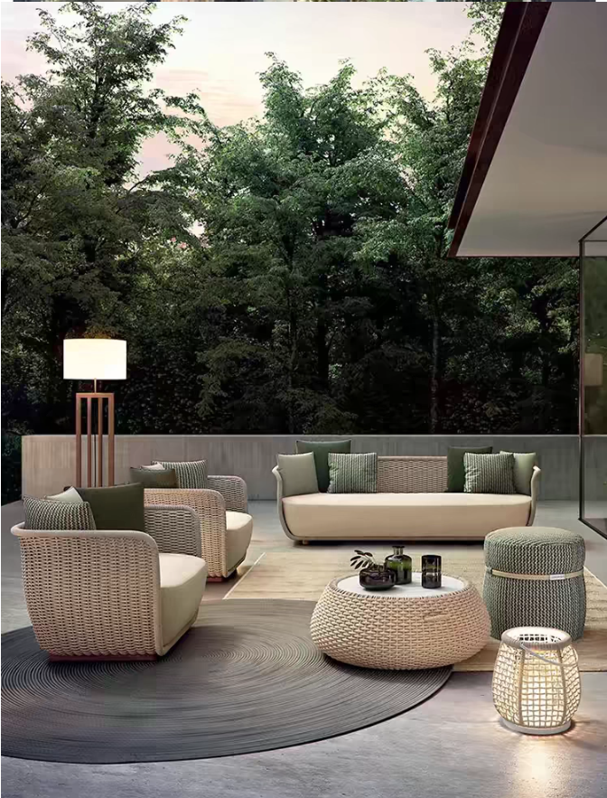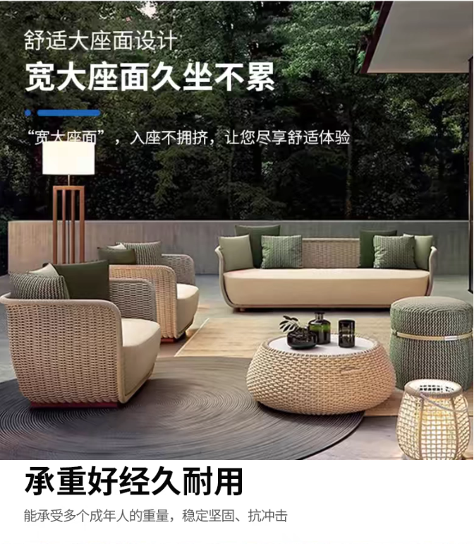 戶外休(xiū)閑(xián)藤椅庭院露台藤編沙發(fā)茶幾簡約別墅花園防水防曬家具