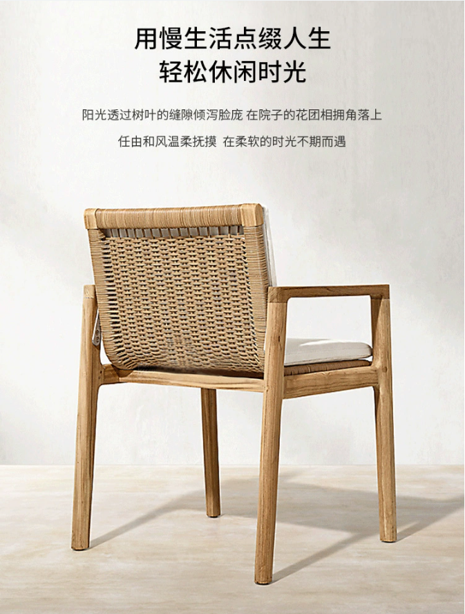 桌(zhuō)椅藤椅防水別墅實(shí)木不鏽鋼(gāng)戶外藤編室外庭院組合防曬酒店桌椅