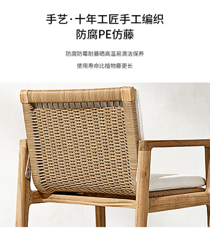 藤編露(lù)台圓桌防曬戶外(wài)家具庭院花園長桌桌椅柚木北歐休閑組合防水