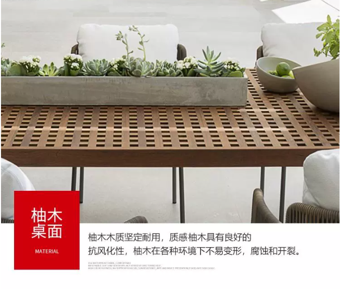藤編露台圓桌防曬戶(hù)外家具庭院花園長桌(zhuō)桌椅柚木北歐休閑組合防水