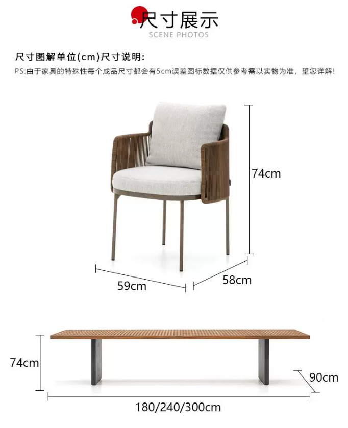 桌椅藤椅防水別(bié)墅實木不鏽鋼(gāng)戶外藤編室外(wài)庭院組合防曬酒店(diàn)桌椅