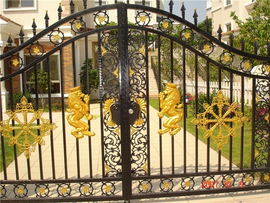 2.鐵藝(yì)門的材質與工藝,鐵藝大門的材質與(yǔ)工藝有很多,要根據實際情況(kuàng)進行選擇和使用。鐵藝門的材質有:方管、方鋼、扁鐵、圓鋼等。**鐵(tiě)藝門的材質都采用國標Q-23**級鋼,青島德宏鐵藝也是使用這種鋼材,保證鐵藝大門的質(zhì)量。鐵藝大門使用的工藝:冷焊技術、二氧化碳(tàn)保護焊技術相結合的現代化工藝,現代化拋丸工藝,除鏽清理效(xiào)果和鍍鋅(xīn)防鏽處理工(gōng)藝,配合現代化的(de)噴塑工藝相結合,使(shǐ)鐵藝門的防鏽效果大大加強,延長了鐵藝大門的使用壽命。
