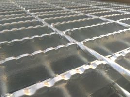1.熱鍍鋅鋼格(gé)板是(shì)在(zài)高溫下把鋅錠融化,在放入一些輔助材料,然後把金屬結構件浸入鍍鋅槽中,使金(jīn)屬構件上附(fù)著(zhe)一層鋅層。熱鍍鋅的優點在於他的防腐能力強,鍍鋅(xīn)層的附著力和(hé)硬度(Hardness)較好。